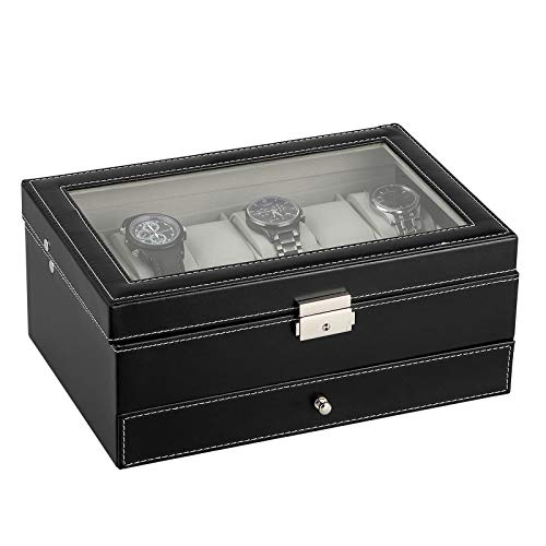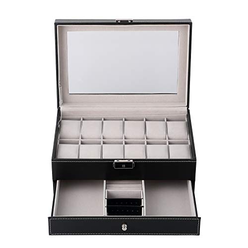 12 Watch Box Double-Layer Display Storage Watch Case Jewelry Collection Organiser Holder