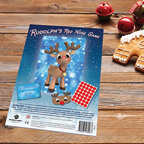 INCLUDES: XL Rudolph Poster (595mm x 420mm), 35 Red Nose Stickers, Rudolph Blindfold, Winner Certificate and Instructions.