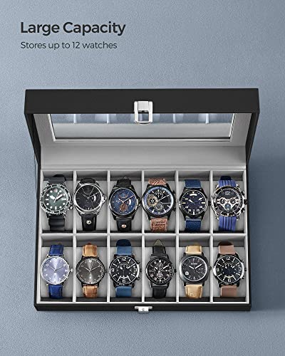 SONGMICS Watch Box with 12 Slots, Watch Case with Glass Lid, Watch Display Box with Removable Watch Pillows, Metal Clasp…