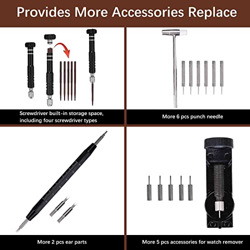 【Professional Watch Repair Tools】This watch repair kit is suitable for opening watch backs, removing and installing watch straps, adjusting watch lengths, replacing batteries and gaskets, cleaning and repairing watches and more. The tools inside the watch tool kit are made of high quality metal steel and hard plastic, very durable.