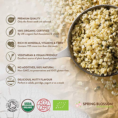 100% ORGANIC & PURE – Spring Blossom hemp seeds are 100% organic certified by UK’s Soil Association, USDA and Ecocert. Our seeds meet the highest standards of quality and are completely free of any pesticides, preservatives, additives or other nasties. Minimally processed, at low temperatures to retain heat-sensitive nutrients.