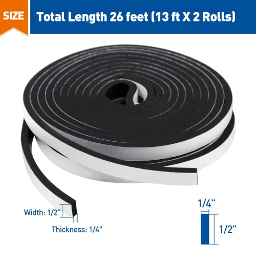 Specification: MAGZO Foam Draught Excluder 12mm(W) x 6mm(T) Door Window Seal Strip Insulation Weather Stripping, 4M x 2 Roll (Total 8 M…