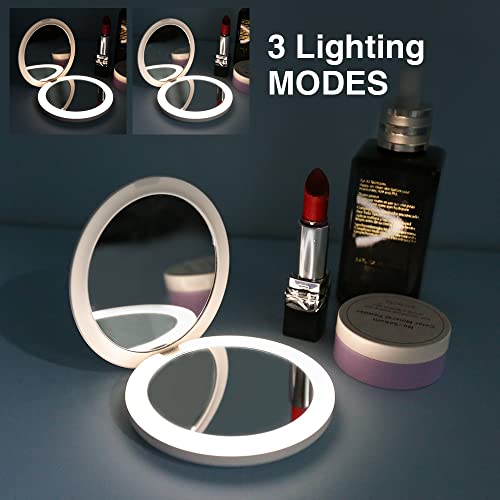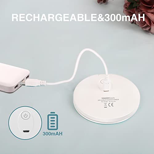 TOUCHBeauty Compact Makeup Mirror, Portable LED Lighted Makeup Mirror, 1X 2X Magnifying Mirror, 3.5 inch Pocket…