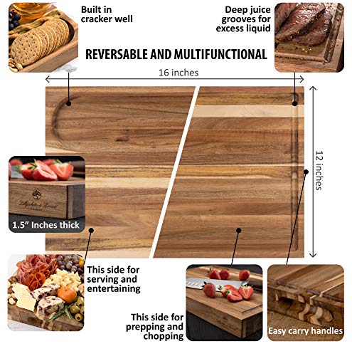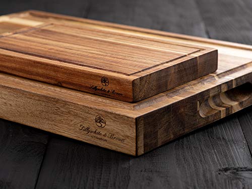Premium Wooden Chopping Board Set of 2 – Large Acacia Wood Chopping Board with Reversible Charcuterie Board, Serving…