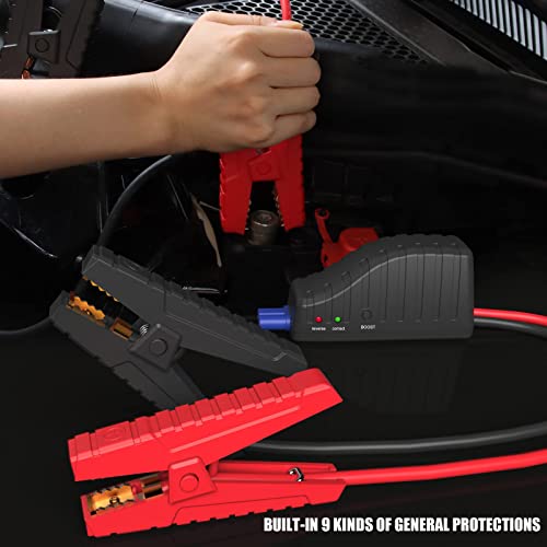 10 PROTECTIONS: The GOOLOO GE1200 portable car jump starter battery pack has built-in 10 kinds of general protections, besides, this jump starter has upgraded to 3-pin output port. And the intelligent jump cable can read the vehicle’s battery voltage for enhanced diagnostics of the battery condition and notify you the wrong operation by warning symbol and buzzing