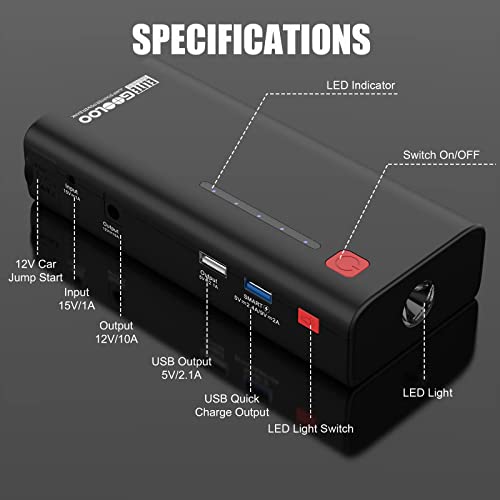 Specification: GOOLOO Jump Starter Power Pack, 1200A Peak 18000mAh (Up to 7.0L Gas or 5.5L Diesel Engine), 12V Portable Car Battery…