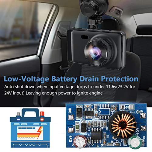 ✅{24 Hour Surveillance}✅: The hard wire kit for dash cam with Mini, ACS, ATO, Micro2 add a circuit fuse holders. The dash cam hardwire connected to car battery or fuse box power, can uninterruptedly supply power for dash camera for 24 hours. Keeps it powered even after engine off, protect your car all day