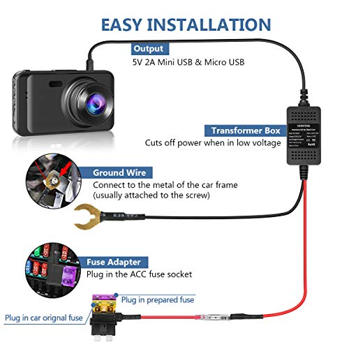Specification: Dash Cam Hardwire Kit, Universal Hard Wire Kit for Dash Camera with Mini/Micro Port, 13ft Car Camera Charge Power Cord…