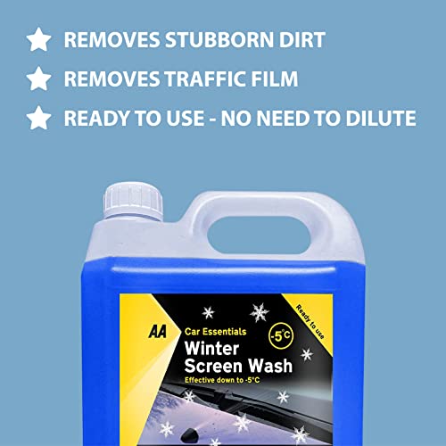 AA Car Essentials – 5L Winter Screen Wash – Effective Down to -5 degrees – Low Smear Formula Car Essentials Range, Blue