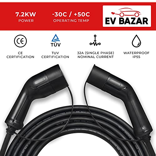 Type 2 to Type 2 (7.2Kw) | 32A | Mode 3 | 1 Phase | 5 Meter | FREE Carry Bag | EV/Electric Vehicle Car charging cable…