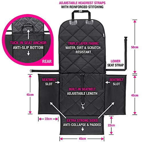 FOR SMALL TO MEDIUM DOGS & PUPPIES: The dimensions of the pet car seat enclosure are 45cm x 45cm and the anti-collapse sides are 22cm tall. It is a fantastic alternative to a dog car carrier and has an anti-slip mesh bottom.