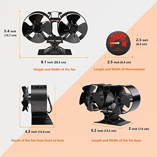 【WARNING】- The small fan for wood burning stove DO NOT OVER 360°C(680°F),and not put the dual fan in front of stove pipe, leave min 4“ away from chimney!!!Manufacturer 1 Year Warranty Included.