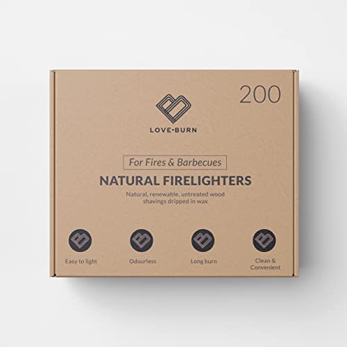 Love Burn Natural Eco Firelighters, Box of 200, for Wood Burners, Stoves, Fire Pits, BBQ, Camping and More(200 Units)