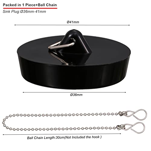 Drain Stopper Plug Quantity:Includes 1 Piece Sink Plug and 1 Pieces 30cm strong ball chian with ring,Easy to remove the sink plug and hang it when not in use.Universal Sink Plug are made of high quality,soft plastic,More durable on market plugs.