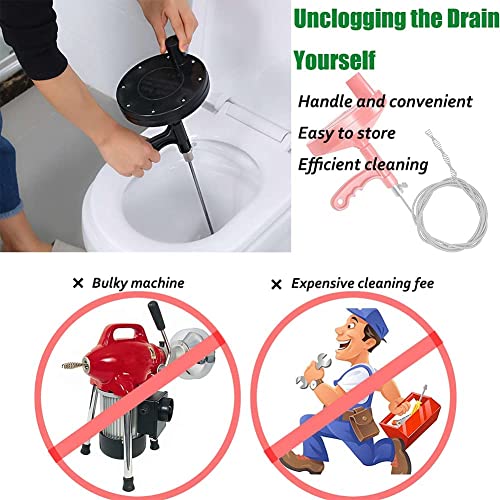 [Easy Storage Neat & Clean]: The Drain Snake Unblocker is made of high-impact ABS drum housing for long-lasting durability.The spring “Snake” auger is made of high-quality 72A Mn-steel and can be easily stored in the drum, making it neater and cleaner than traditional drains. The upgraded metal nozzle can reduce wear and tear, and the auger can be easily fixed or loosened by adjusting the stop screw. The handle is ergonomically designed, non-slip, labor-saving, and comfortable.