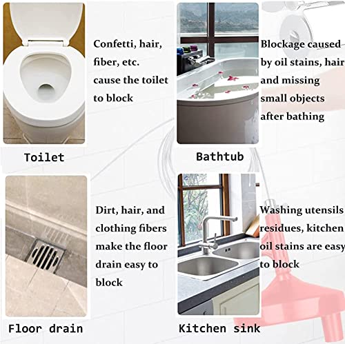 [ Simple Unblocking and Easy to Use]: By holding the non-slip handle and controlling the rotation stop button to adjust the length of the auger extending into the pipe, you can easily unclog the drain pipe by yourself. The elastic spring can be bent more than 90 degrees without breaking or kinking, and it is easier to pass through the bent pipe plumbing, allowing you to effectively reach the blockage of the sink/Toilet drain and quickly remove the blockage.