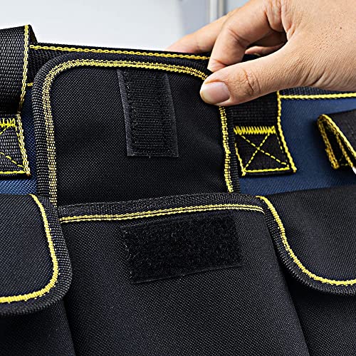 ✔【Large capacity】 Our multi-function tool bag comes with a 360° steel ring. 8 external pockets and 6 internal pockets can hold various tools and accessories such as drills, saws, wrenches, pliers, hammers, tape measures, etc. Ideal for electricians, plumbers, etc.