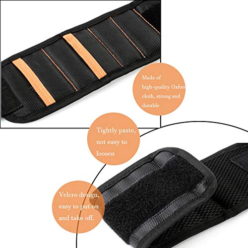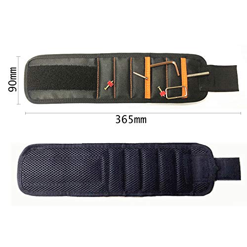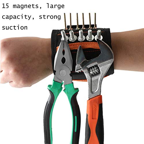 【Fantastic Design】 The perfect stitching of the Magnetic Tool Wristband with 15 super strong magnets, makes the magnetic tool band wrap around almost the entire wrist. Magnetic wristband with a large surface area can easily store and access magnetic items as screws, nails, screwdriver bits, drill bits, nuts, washers and bolts, etc. Whilst providing two different size pockets (useful for non-magnetic items).