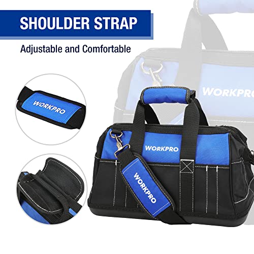 WORKPRO Tool Bag 16-inch, Multi-pockets Heavy Duty Tool Bag with Waterproof Plastic Hard Base, Wide Open Mouth Heavy…