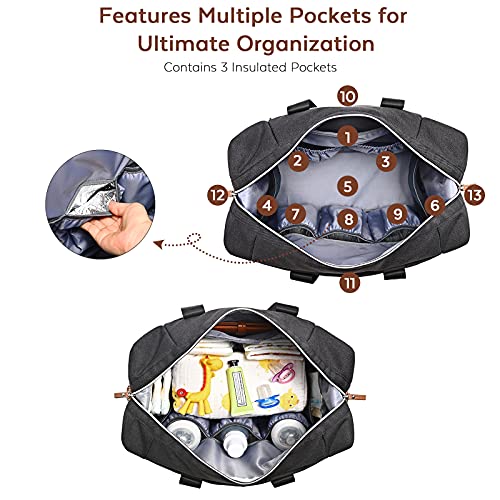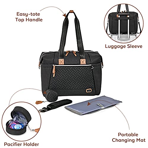 Dikaslon Baby Changing Bag, Large Nappy Bags for Mom and Dad, Stylish Travel Tote with Pacifier Holder and Changing Mat(Black)