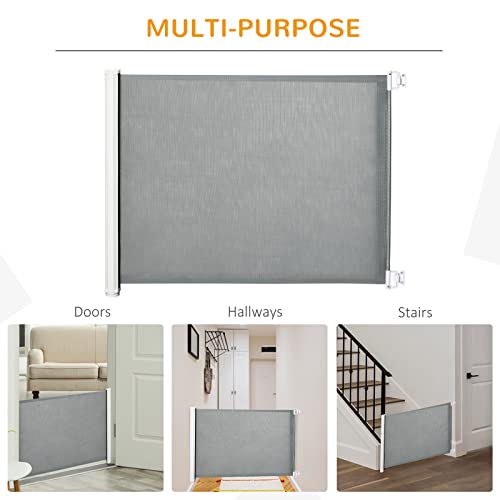 PawHut Retractable Dog Gate Stair Gate Safety Pet Barrier for Home Doorway Room Divider Stair Guard Grey 115L x 82.5H cm