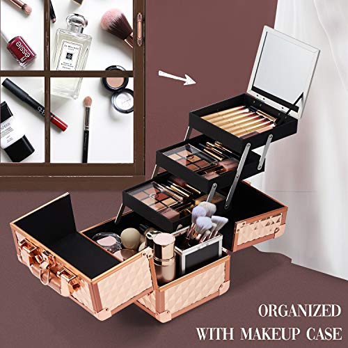 Joligrace Makeup Box Cosmetics Case Jewelry Organiser Vanity Make Up Storage Boxes with Mirror and One Brushes Holder…