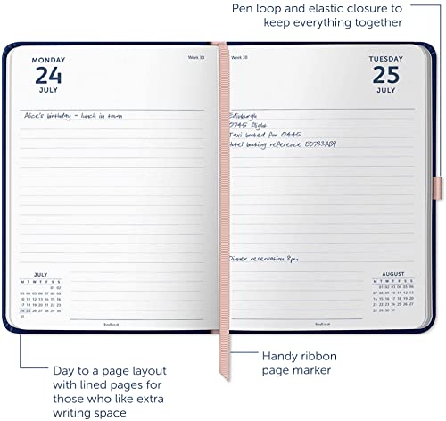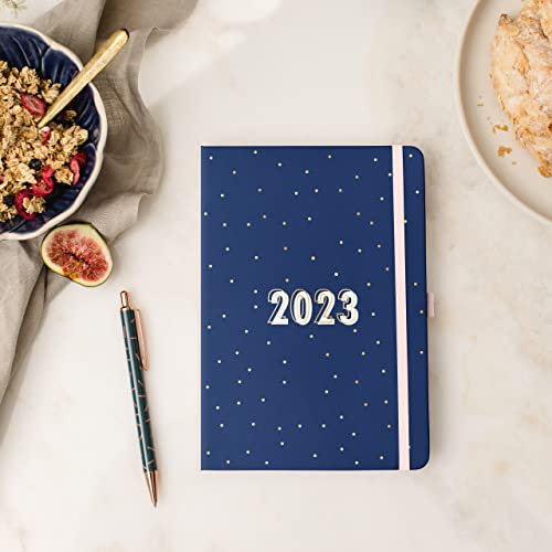 Busy B Day A Page Diary January to December 2023 – A5 Navy Spot – Daily Planner with Lined Pages, Notes and Year Planner
