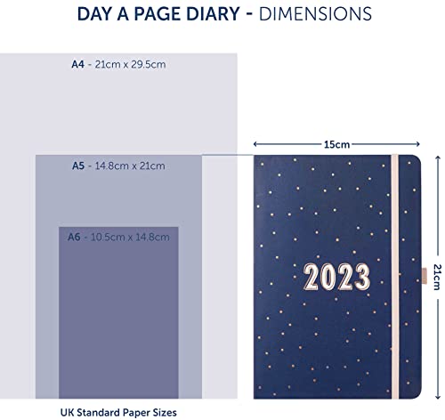 Specification: Busy B Day A Page Diary January to December 2023 – A5 Navy Spot – Daily Planner with Lined Pages, Notes and Year Planner
