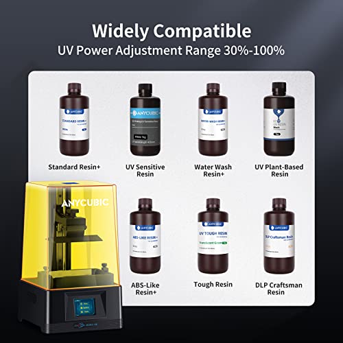 【Universal Compatibility】4K resin 3d printer is compatible with most 3d printing resin. Further, you can get the best printing experience with ANYCUBIC 3d printing UV resins. It has 30 to 100 percent UV light power regulation, so that you will be able to adjust the setting to meet your personalized printing needs.