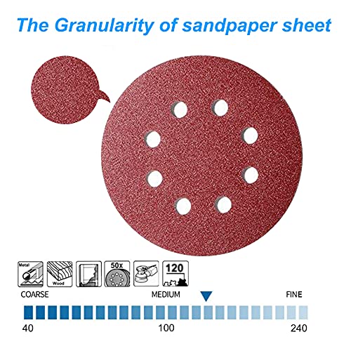 【Matching sander model】Our sandpapaer set contain 50 pcs 120 grit hook and loop sandpaper Sheet and its diameter is 125mm that great for all 5 inch sanding machines.
