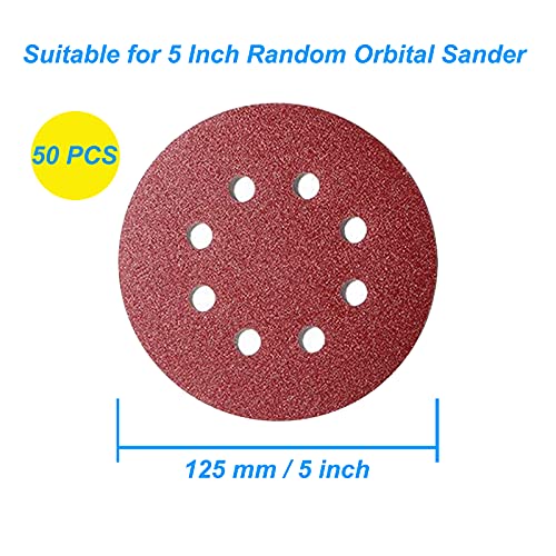 Specification: 50 Pcs 125mm Sanding Discs Pads, Premium 8 Hole 120 Grit Hook and Loop Sandpaper Sheet for Random Orbital Sander.