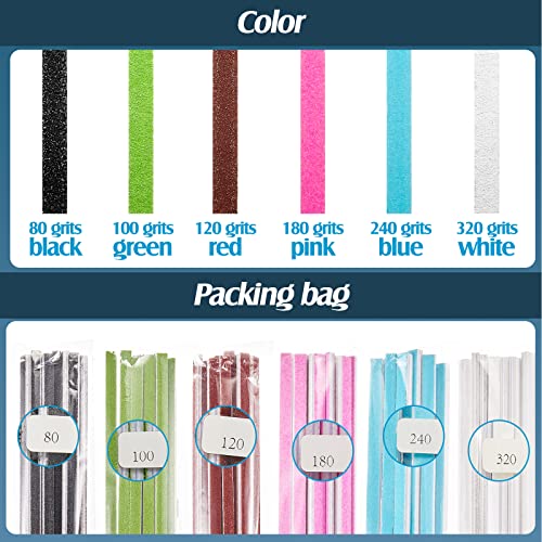 Convenient to Identify: there are 3 different particle sizes, including fine, medium and coarse, different particle sizes are designed in different colors, that is, black is 80, green is 100, red is 120, pink is 180, blue is 240, and white is 320; You can touch the polishing stick with your fingertips to identify dullness