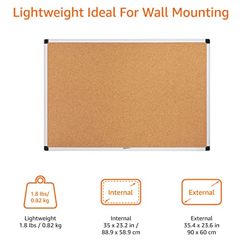 Specification: Amazon Basics Aluminum Frame Cork Notice Board 90cm x 60cm