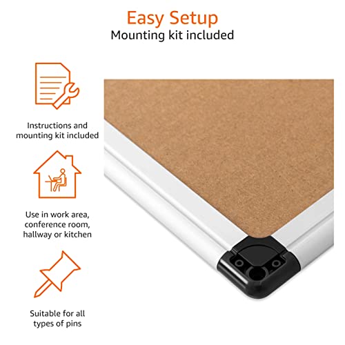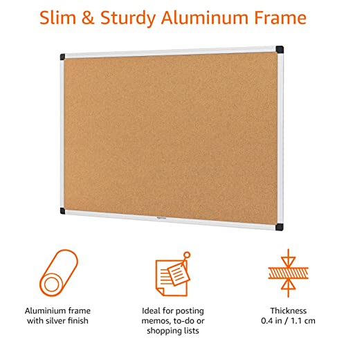 Amazon Basics Aluminum Frame Cork Notice Board 90cm x 60cm