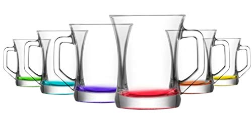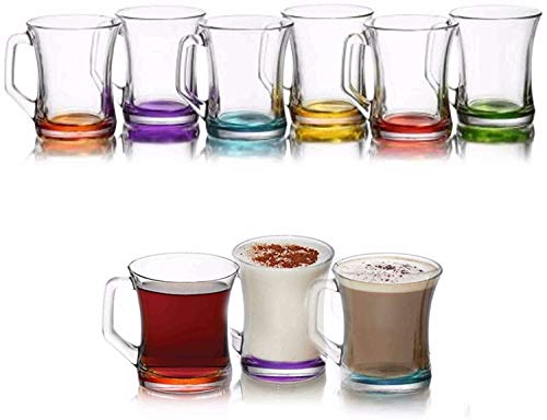 Specification: Lav (Set of 6) Hot Drink Mugs/Coloured Base Tea Coffee Latte Cappuccino Glasses/Glass Drink Cups /(225 cc / 7.5 oz)