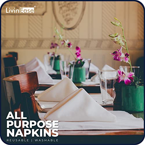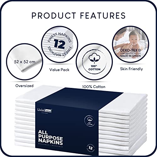 VALUE PACK – LivinEase Pack of 12 oversized 46 x 46 cm Premium Dinner Cotton Napkins Provides you with enough Cloth Napkins for all your household needs
