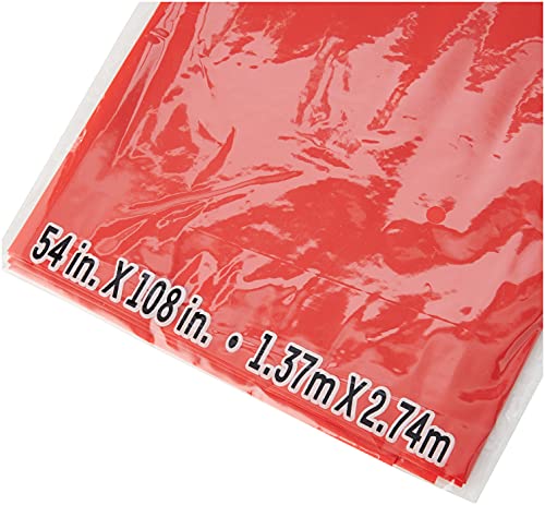 Red Plastic Tablecloth measures 54 in x 108 in (1.37m x 2.74m)