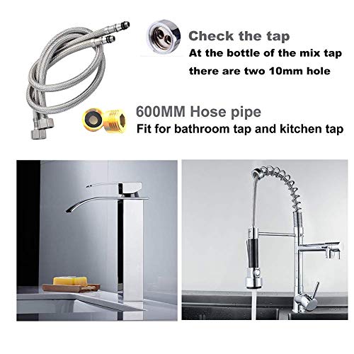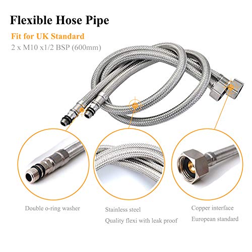 Specification: Pack of 2 Kitchen/Basin Monobloc Mixer Tap Connectors Flexi Pipes Tails British Standard Pipe M10 x1/2 Fitting 600mm…