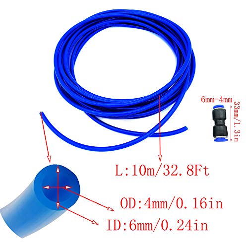 Size:Outside Diameter:6mm / 0.24 inch,Inside Diameter:4mm / 0.1 inch,Wall Thickness:1mm / 0.04 inch,Total Length:10M / 32.8Ft