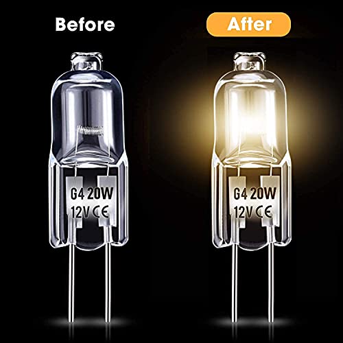 G4 Halogen Light Bulbs 20W 12V Clear Capsule 2 Pin Lamp Bulb Halogen Pin Base Warm White Dimmable 10 Pack