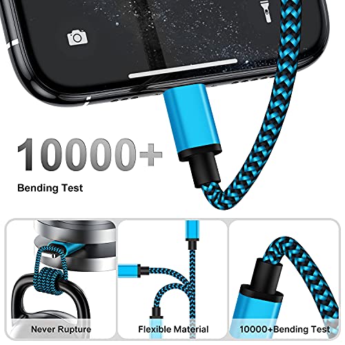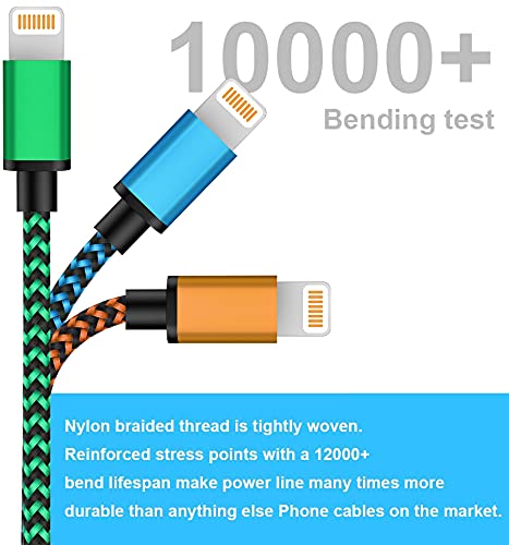【 No Worried Connector Broken】 : Premium metal connectors and bulletproof braided nylon of this iphone charger improve durability and reduce fraying. 10X stronger than others, can bear over 12, 000 bending