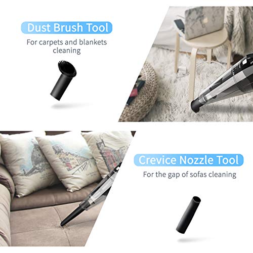 【Lightweight & Deep Cleaning without Blind Corner】- The car vacuum cleaner high power cordless, equipped with 2 different nozzles to meet all your car cleaning needs. The couch vacuum is portable to use, and can reach some hard-to-reach areas such as sofa gap and inside of your car, and the super bright LED light ensures your cleaning work both in brightness and darkness.