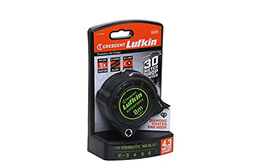 Specification: Lufkin L1125BCM 8m x 3cm ShockForce Night Eye Dual Sided Tape Measure, 30 Meter Drop Tested, Metric, Black Bladed…