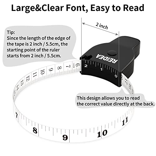 BODY MEASURE TAPE – Measures any body part: arm, thigh, calf, chest, waist, hips, and more, Measures up to 60 inches in length (150cm), Because the measuring tape housing is 2 inch wide,we starts at 2 inch/ 5 cm measure to help simplify the measuring process.
