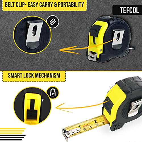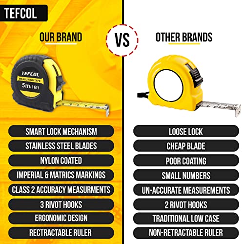 Specification: TEFCOL Retractable Tape Measure 5m 16Ft, Heavy Duty Nylon Coated Measuring Tape, Imperial and Metric Measurement with…
