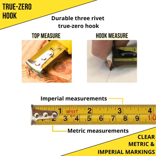 [PRECISION]; Our measure tape has got three rivets with true zero-end hook for accurate measurements. It has got clear metrics and imperial markings which makes it a perfect fit for both DIY and professional use.