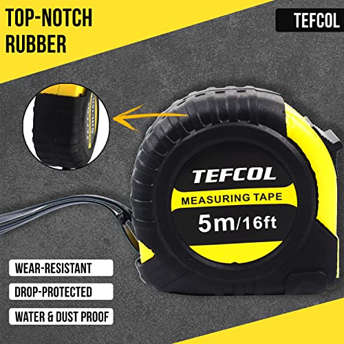 TEFCOL Retractable Tape Measure 5m 16Ft, Heavy Duty Nylon Coated Measuring Tape, Imperial and Metric Measurement with…
