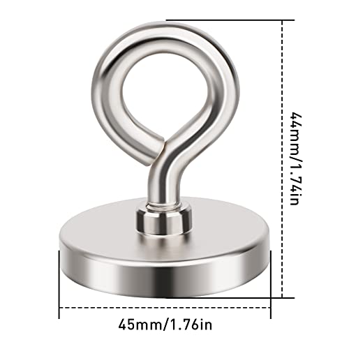 ✅【Easy to use】 – Eye bolt screws directly into steel base for easy installation. Simply attach a rope and enjoy your treasure hunt with your friends. Magnet Measurements – Diameter = 1.76 inch(45 mm), height = 1.74 inch(44 mm), Thickness = 0.39” (10mm) and Weight = 0.37 lb(0.17 kg).