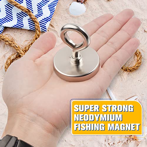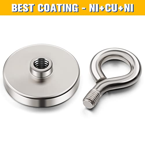 Fishing Magnets, 90 KG(200 LB) Pulling Force Strong Magnet Fishing, Neodymium Rare Earth Magnet with Lifting Eye-Bolt…