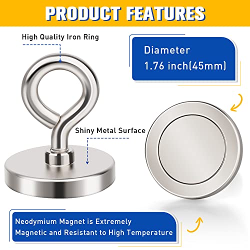 ✅【Super Powerful】 – Amazing strong, N52 top magnetic degree, sturdy and reliable fishing magnet with a 1.76 inches CNC machined steel base in diameter, super strong super thick neodymium rare earth magnet, it offers 200 pound pull force. Permanent strong fishing magnet!